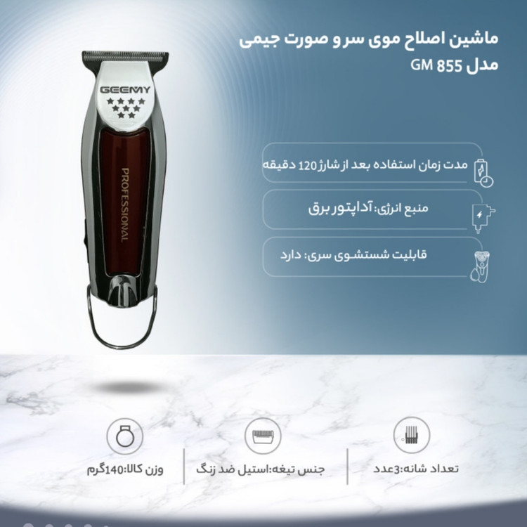 ماشین اصلاح موی سر و صورت جیمی مدل GM 855 از تکنولوژی اصلاح بصورت برش مستقیم با تیغه استیل ضد زنگ بهره می برد.