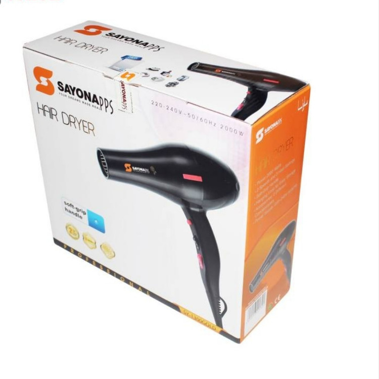 سایونا برند نام آشنا در تولید محصولات با کیفیت برقی است.یکی از این محصولات با کیفیت سشوار سايونا 2000 وات مدل SY-1300 است. این محصول با بهره گیری از موتور AC دارای قدرت پرتاب باد بسیار بالایی است و در دسته سشوار های حرفه ای قرار میگیرد.روی دسته این محصول 3 دکمه تعبیه شده که آنها تنظیم حرارت سشوار و سرعت دمیدن باد را به عهده دارند به این صورت که یک دکمه جهت ایجاد باد سرد به طور لحظه ای است. یک دکمه 3 حالت بدون حرارت، حرارت کم و حرارت زیاد را انجام میدهد. یک دکمه هم تنظیم 3 حالت